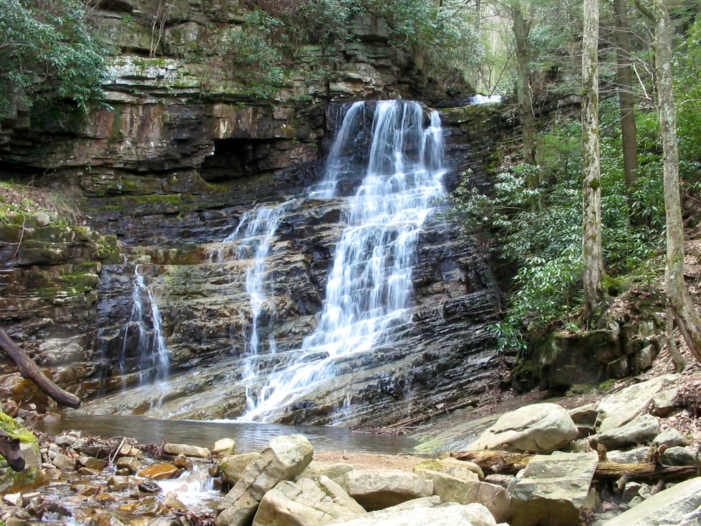 Dudley Falls is a sliding waterfall that dumps into a nice little swimming hole in Paint Creek. It's a popular area with the locals and part of the Paint Creek Corridor.